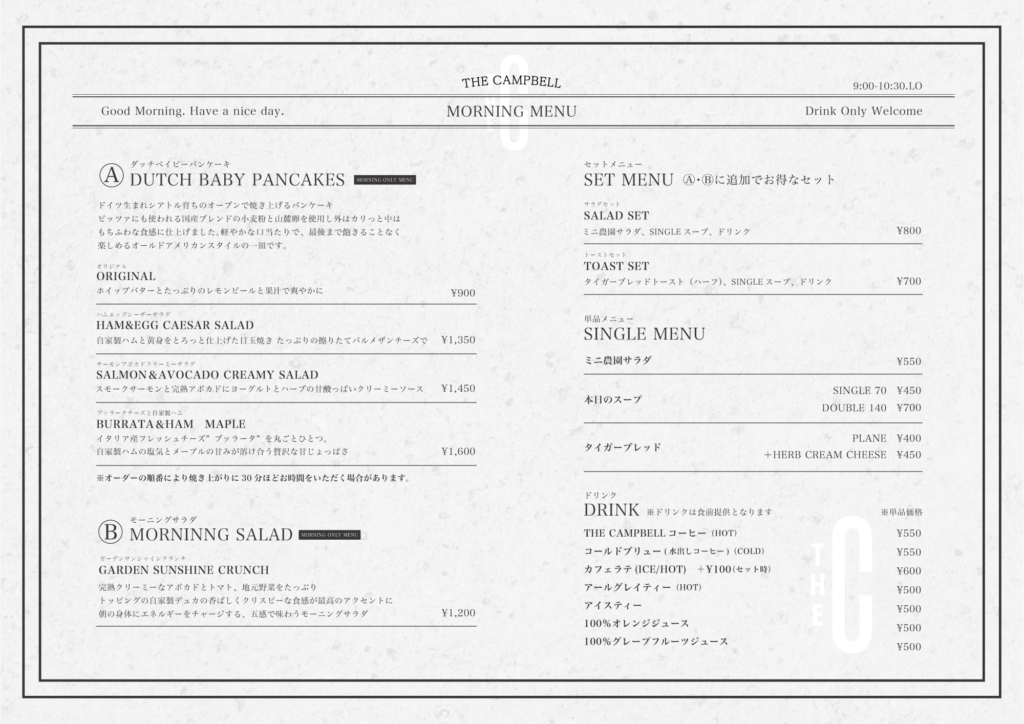 2026年3月23日(月)にTHE CAMPBELLのモーニング営業がスタートいたします。
